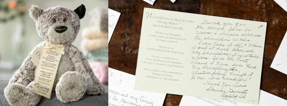 We at DEMDACO believe every product creates a conversation. We hope to participate in the meaningful moments of your lives. We don't create those moments — we aspire to make them a little better. We want to be there in times of comfort, love and joy. We strive to Lift the Spirit in you, in each other and in our communities.